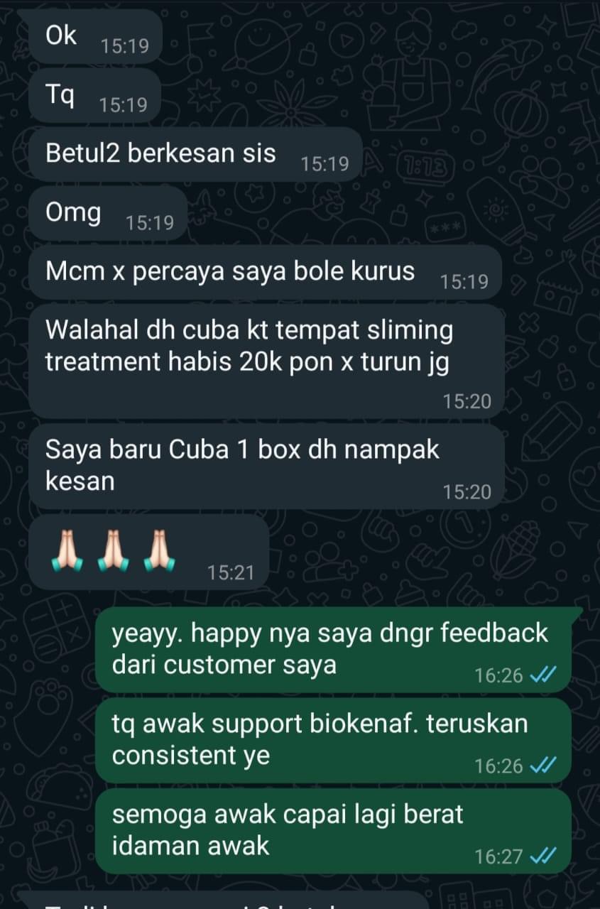 Kesan Dialami Pengguna Biokenaf Seawal 28 Hari Melalui Temubual Whatsapp