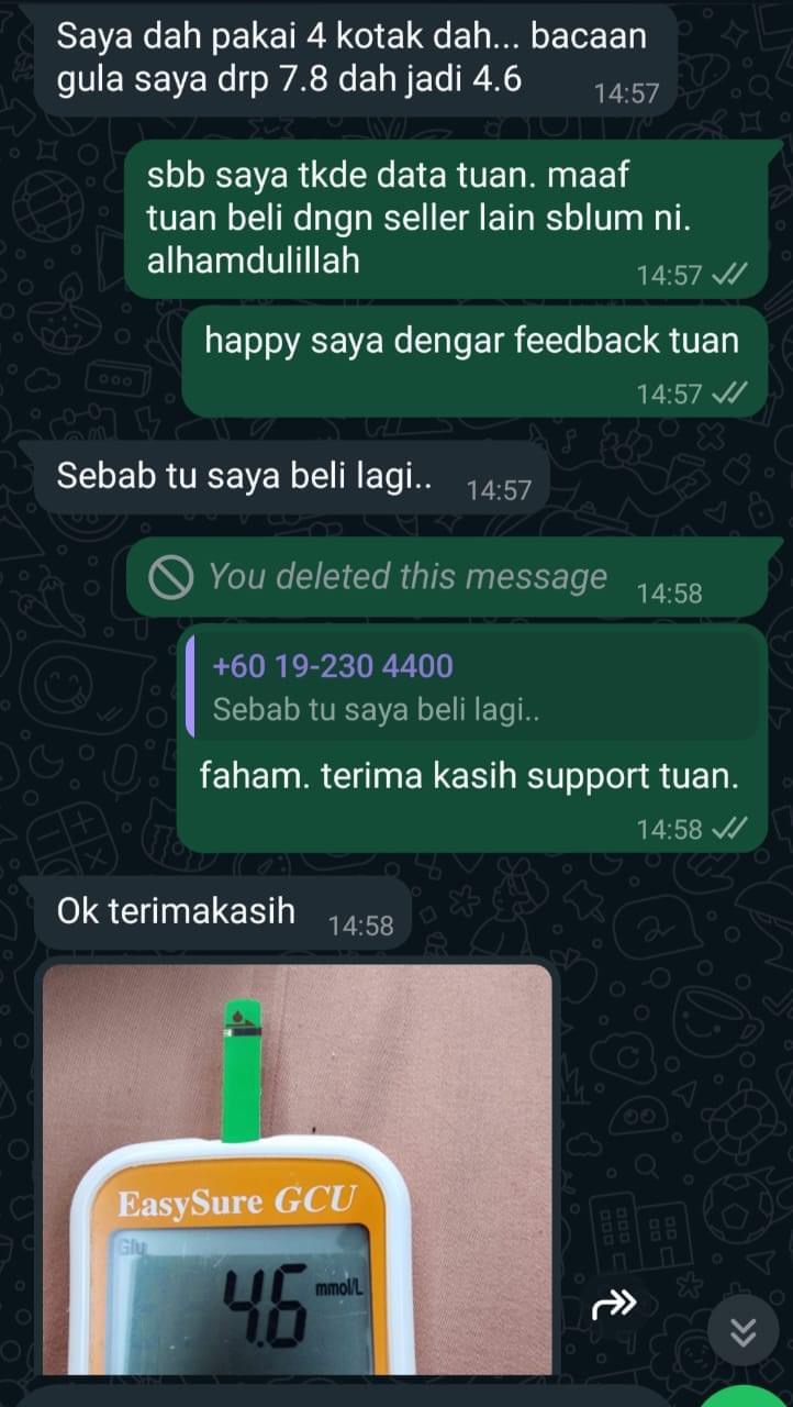 “Berat saya turun 8kg Selepas Amal 3 Kotak, hairan saya, kat mana hilang lemak sebab takde cirit birit, tapi yang saya perasan selera makan saya berubah, buang air besar lawas, paling best! Gout saya eh tibe tibe hilang!” – En. Mustam.