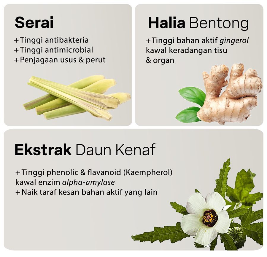 Biokenaf® diformulasi untuk bantu rawat masalah diatas. Sekiranya ada gastrik, betulkan masa makan terlebih dahulu sebelum amalkan teh herba Biokenaf®