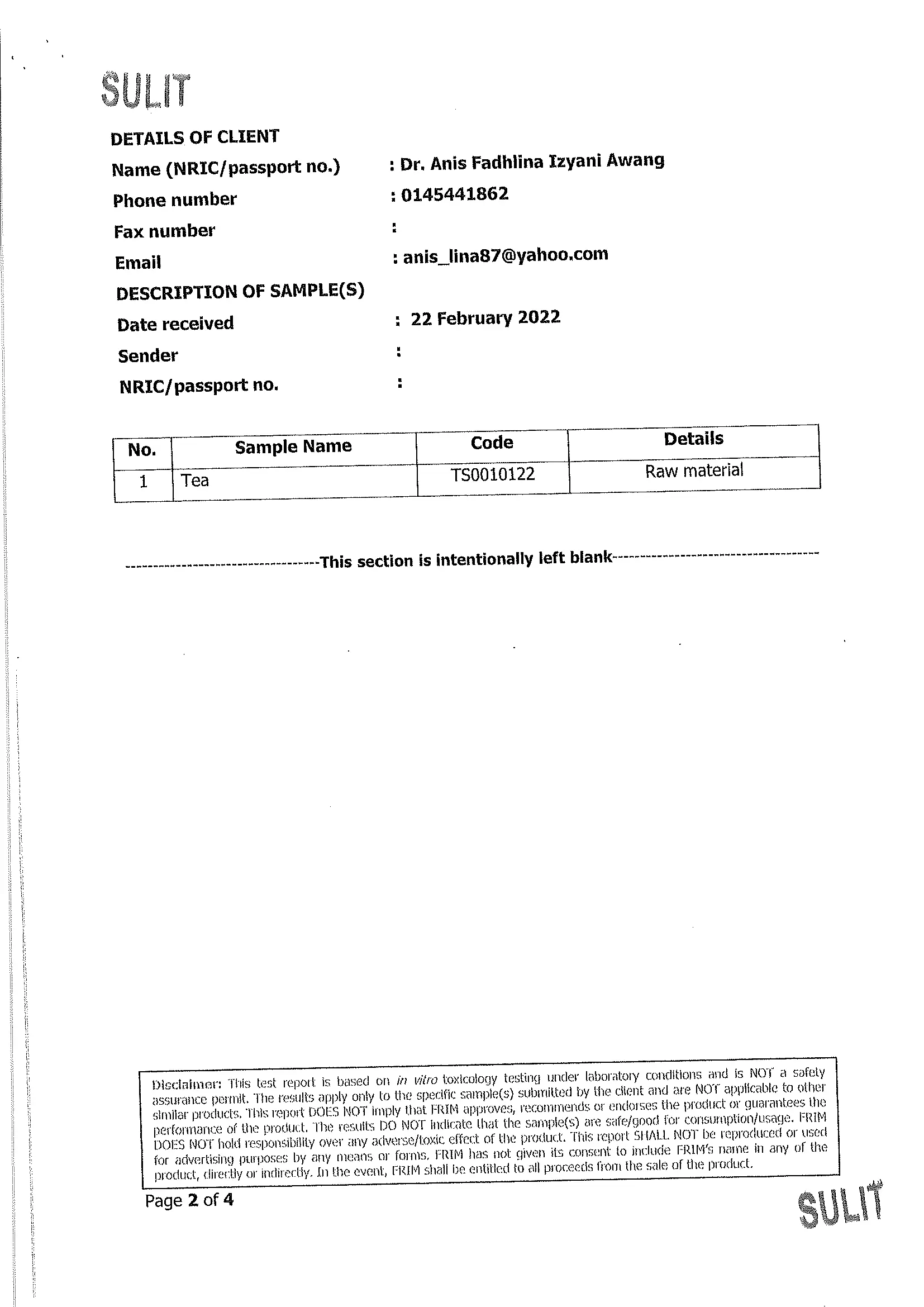 Biokenaf® diformulasi dari bahan semuljadi, 100% Organik tanpa bahan pengawet & telah menjalani ujian makmal ke atas sel hati memastikan keselamatan produk.